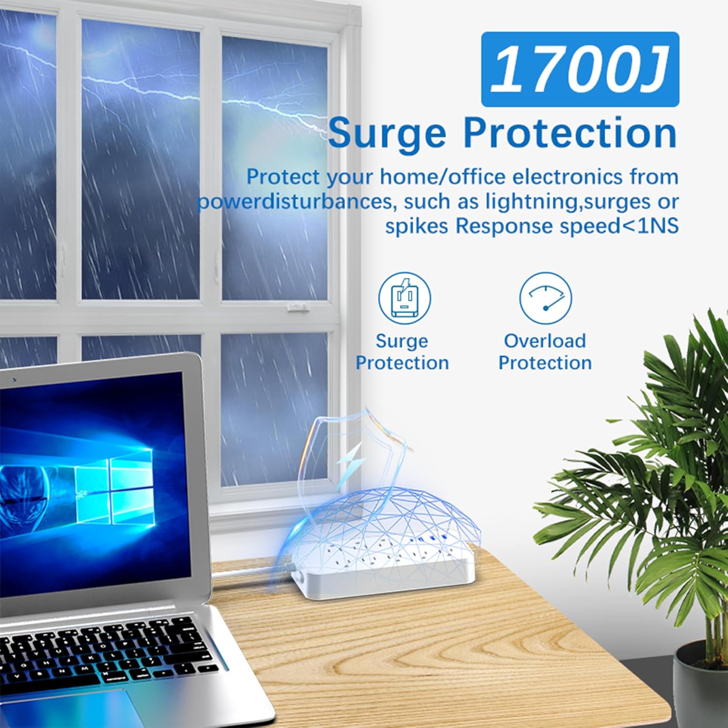 Overload and Shockproof Protection: Ensuring your safety is our top priority. This power strip comes with built-in overload protection that cuts off power automatically to prevent damage to your devices during power surges. Plus, its shockproof design provides an extra layer of safety.