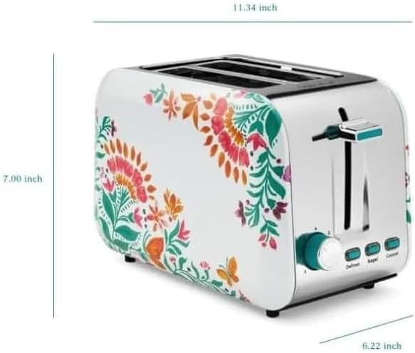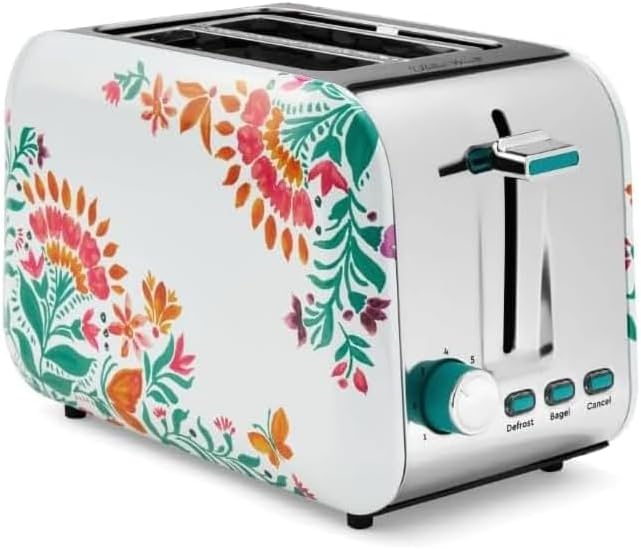 Whether you like your bread slightly warmed or extra crispy, Pioneer Woman sweet rose 2-slice toaster has got you covered. Its classic turn-dial timer and three button functions, cancel, defrost, and bagel, make it perfect for toasting bagels, waffles, English muffins, and more.