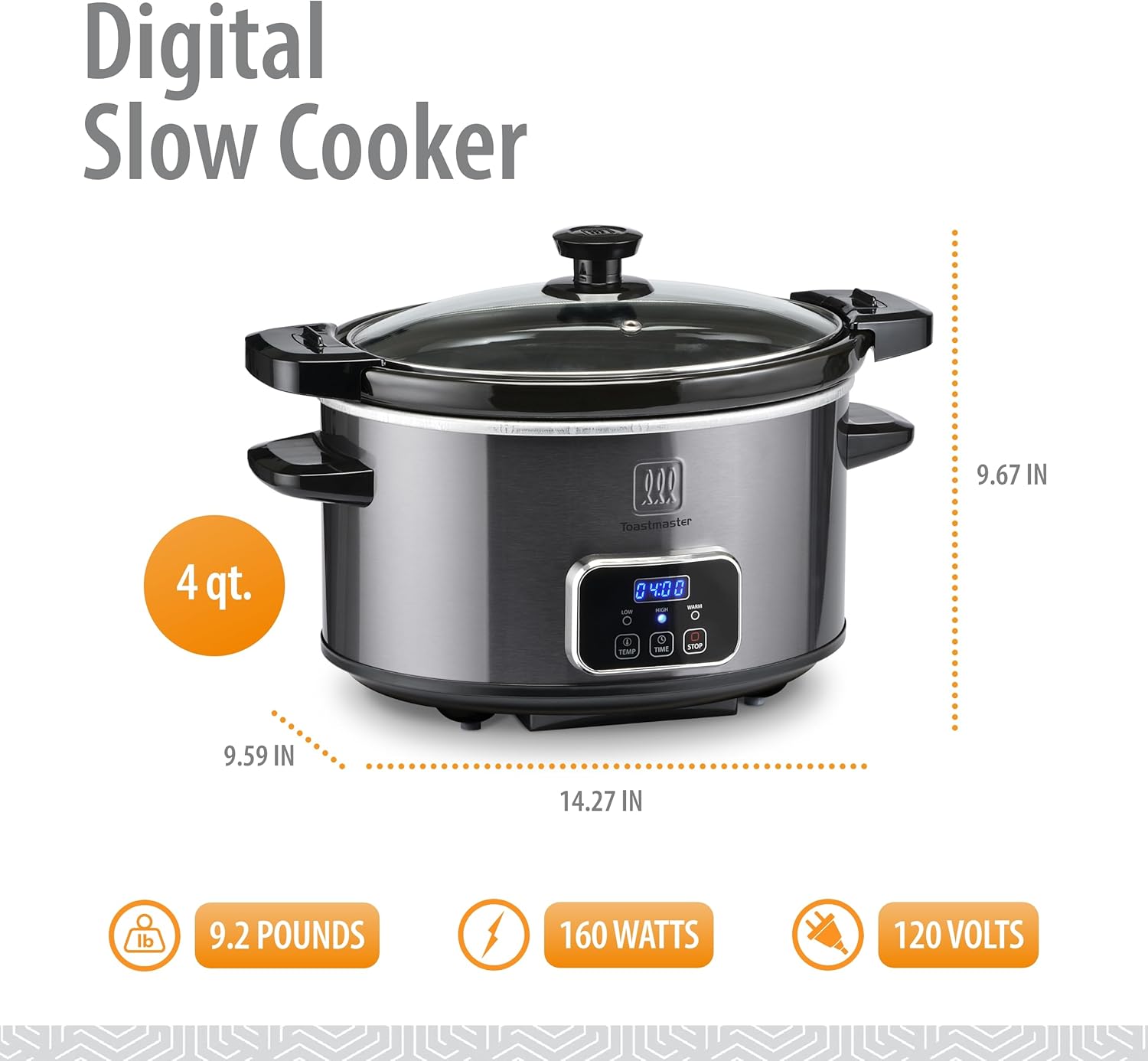 Toastmaster 4-Quart Digital Slow Cooker with Locking Lid (Graphite)