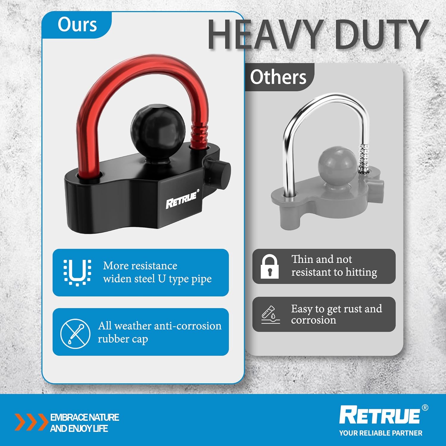 Superior Security – Crafted from an aluminum body and high-strength A36 steel, this trailer hitch lock provides robust cut and shear resistance. Rustproof, weatherproof, and QC product quality certified.