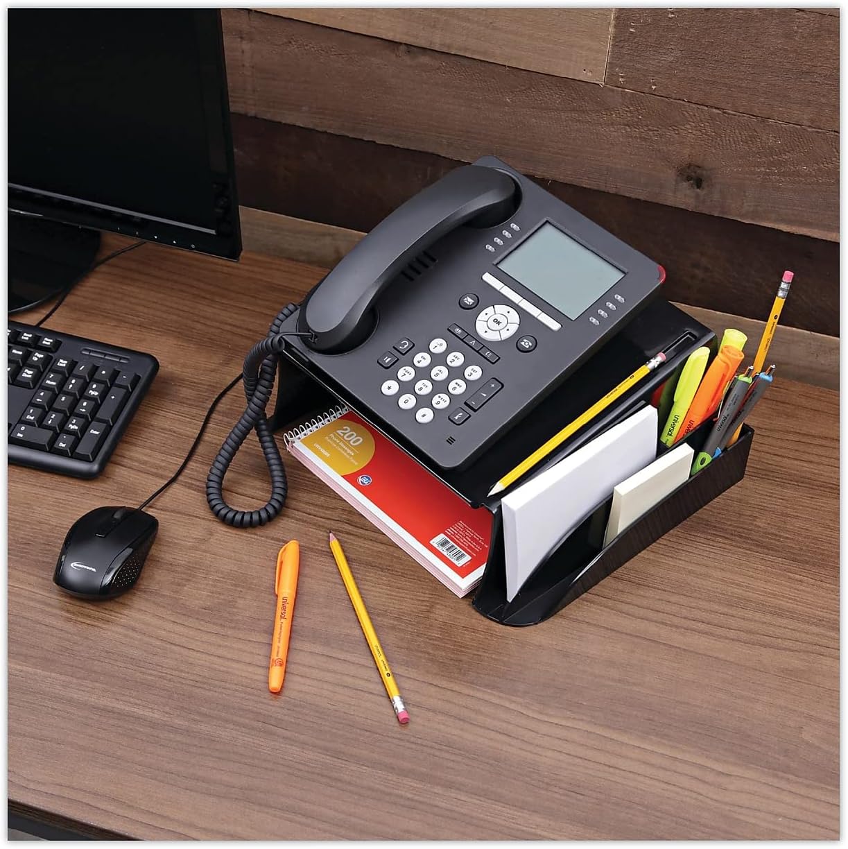 Universal UNV08116 12-1/4 in. x 10-1/2 in. x 5-1/4 in. Telephone Stand and Message Center – Black