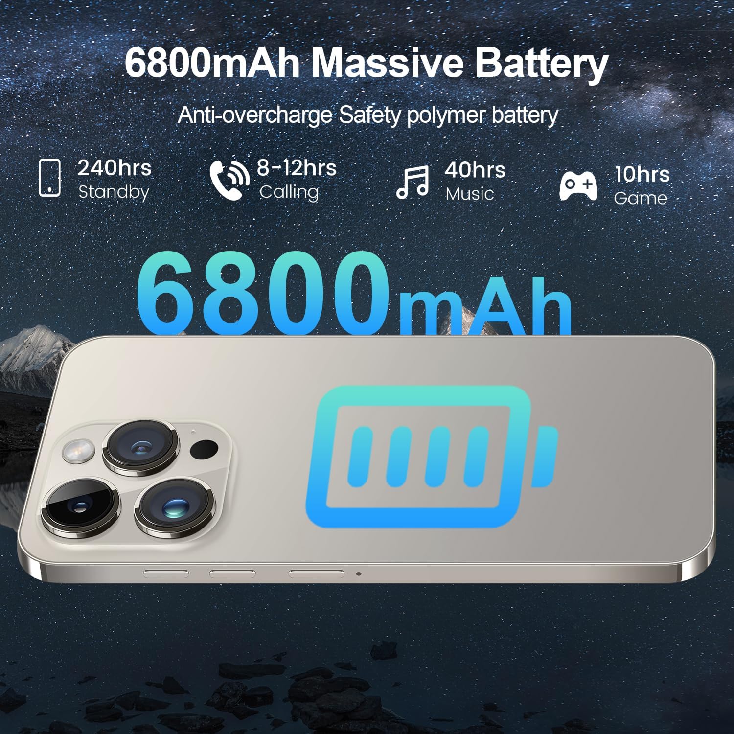 【6800mAh large battery】 The cell phone is equipped with a large 6800mAh battery, saying goodbye to battery anxiety. When you are still worrying about batteries, please choose it! Trust me, you don’t need to charge it all the time, because its battery is very big enough for you to use, and it is enough to meet your daily needs! you can immerse yourself in everything this phone has to offer without constantly worrying about charging. Whether you’re on a long road trip, exploring new places, or just making it through a busy day at work, this powerful battery ensures your smartphone stays charged when you need it most.