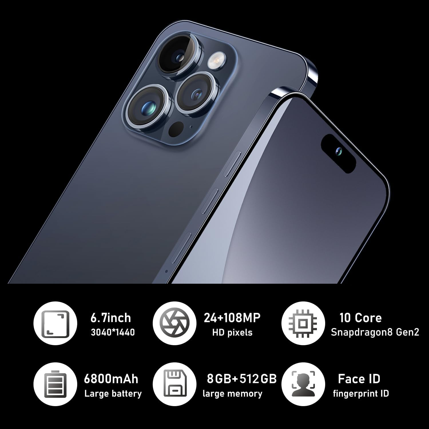 🔋【6800mAh Long-lasting Battery】The unlocked mobile phones is equipped with 6800mAh large battery, which allows you to go on browsing, playing games, watching movies or so for hours.You can aslo enable the Face ID function to unlock the smartphone quickly at a glance.