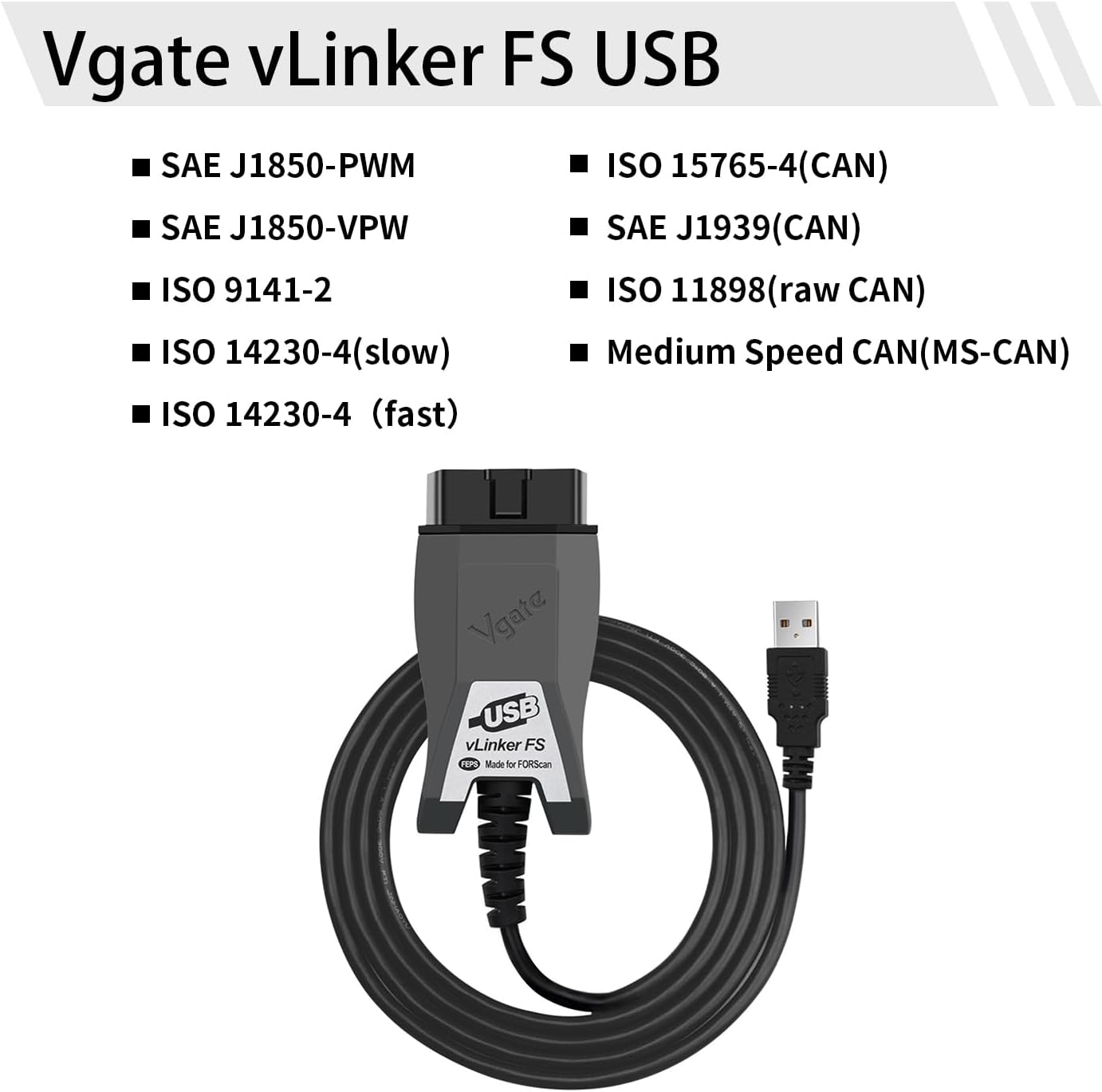 Vgate vLinker FS USB OBD2 to USB Car Diagnostic Tool Code Reader for FORScan OBD2 Adapter