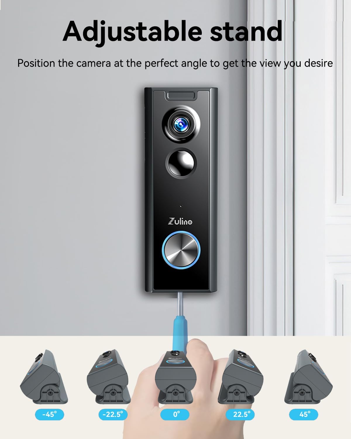 2K QHD & Night Vision: The Zulino wireless camera doorbell presents a 2K QHD video with a 166° monitoring angle, which can achieve a clear real-time sight effect. The built-in infrared light automatically senses the environment and switches to night vision mode, So can see clearly even in pitch-black darkness.