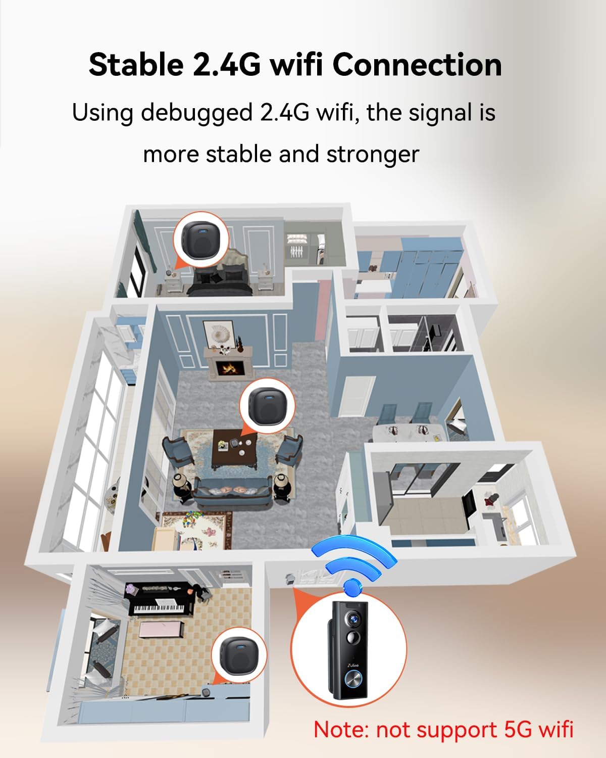 Smart Motion Detection & Personalized Alerts: The Zulino video doorbell built-in PIR sensor ensures you get instant notifications when someone rings your wireless doorbell or when motion is detected, at the same time with adjustable sensitivity and customizable zones, It will reduce false alarms.
