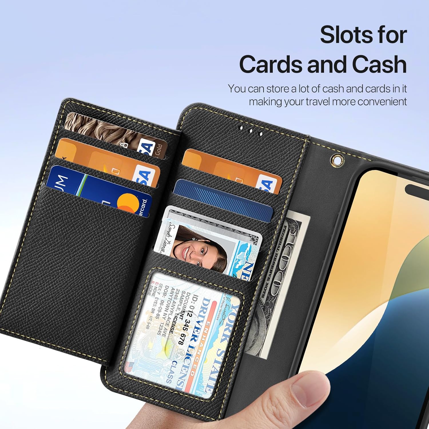 CARD HOLDER : This iPhone case with folding wallet & card holder designing, it offers 6 card slots, 1 zip pocket and 1 cash compartment for credit cards, ID, business cards, cash, bills.