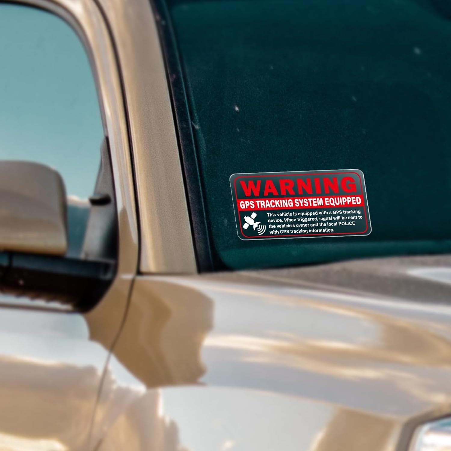 PACKAGE INCLUDES:The sign measures 4 x 2 inches with 10 pieces included in the package. It can be well seen by thieves and other unlawful persons. You can use this sticker even if you don’t have a GPS system.