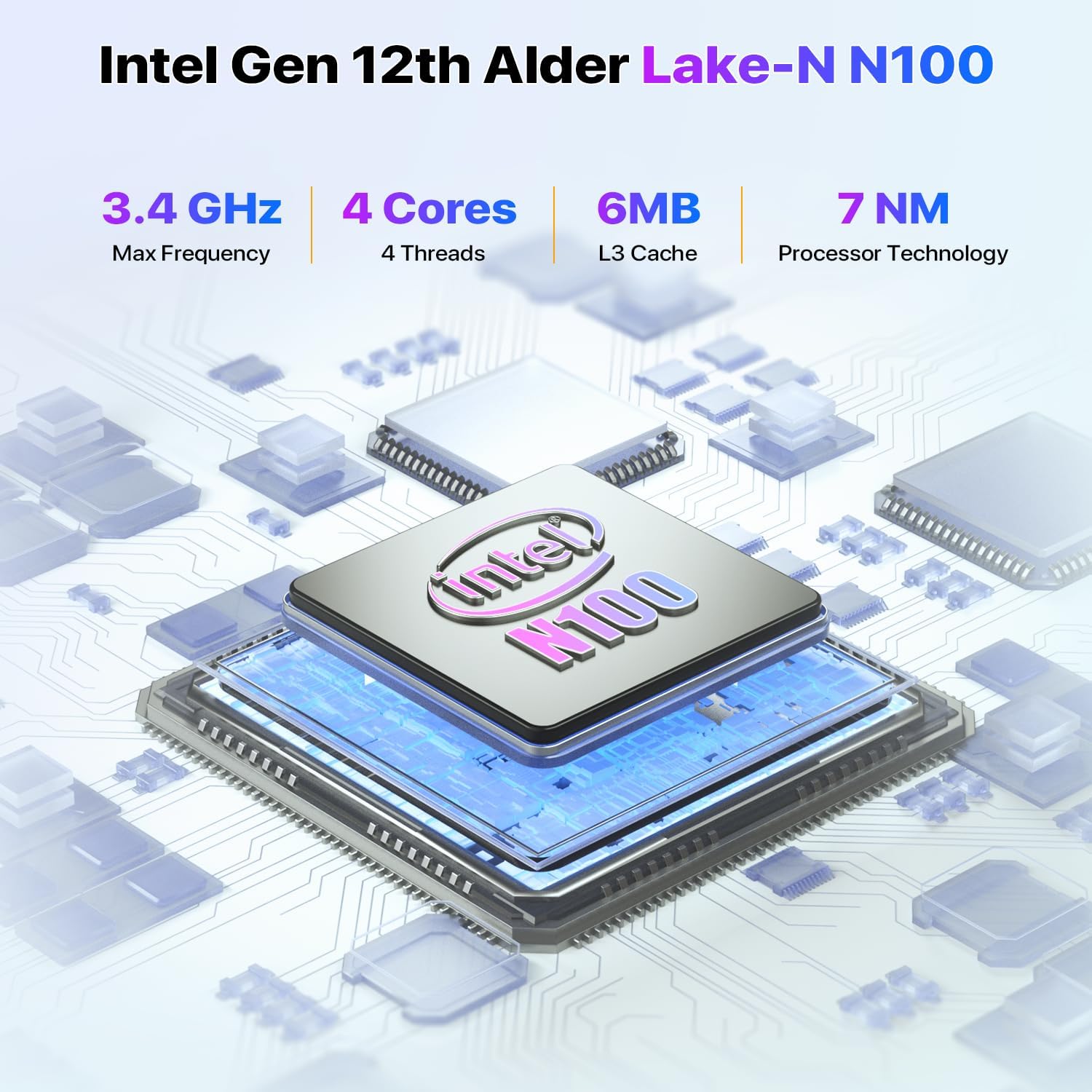 【Powerful 12th Gen Intel Alder Lake-N100 CPU】—— Trycoo WI-6 Mini PC is powered by the latest 12th Gen Intel Alder Lake-N100 Processor (4C/4T, 6MB Cache, 3.4GHz , 6 W TDP) from 2023 and delivers more than 40% higher performance than N5105/N5095.