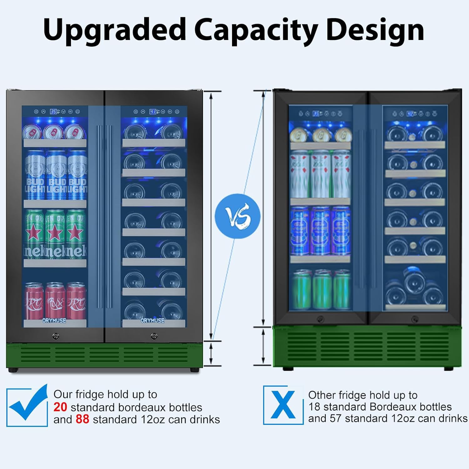 Wine & Beverage Refrigerator, 24″ Dual Zone Beverage Fridge with Upgraded Compressor Cooling, Under Counter Beverage Cooler 20 Bottles & 88 Cans Large Capacity, Built-In/Freestanding, Black