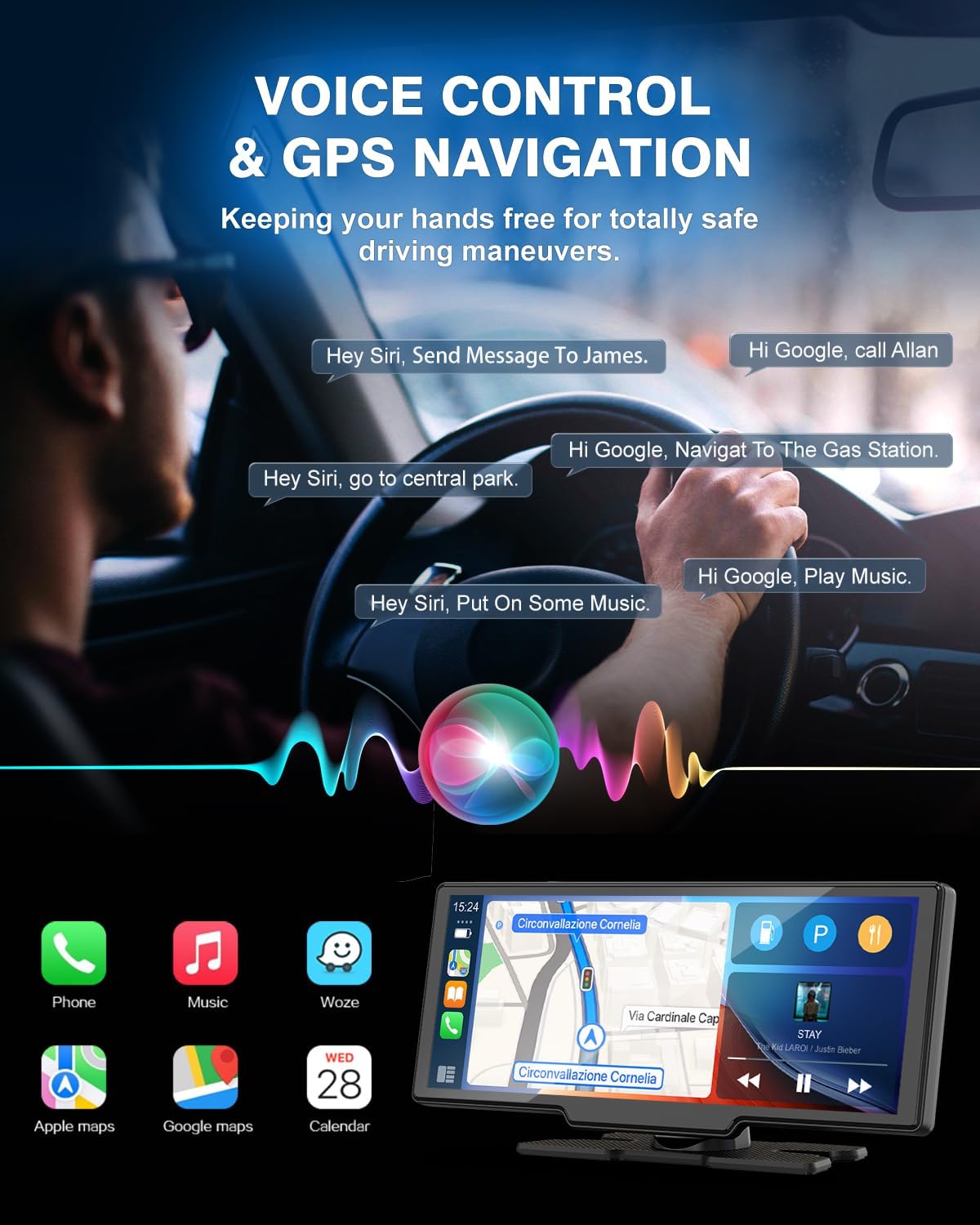 Wireless Car Play Screen for Car, 1080P Backup Camera 4K Dashcam, 10.26in Compatible with Apple CarPlay Android Auto Digital Media Player Receiver, GPS Navigation/Voice Control/TF Card/Mirror Link