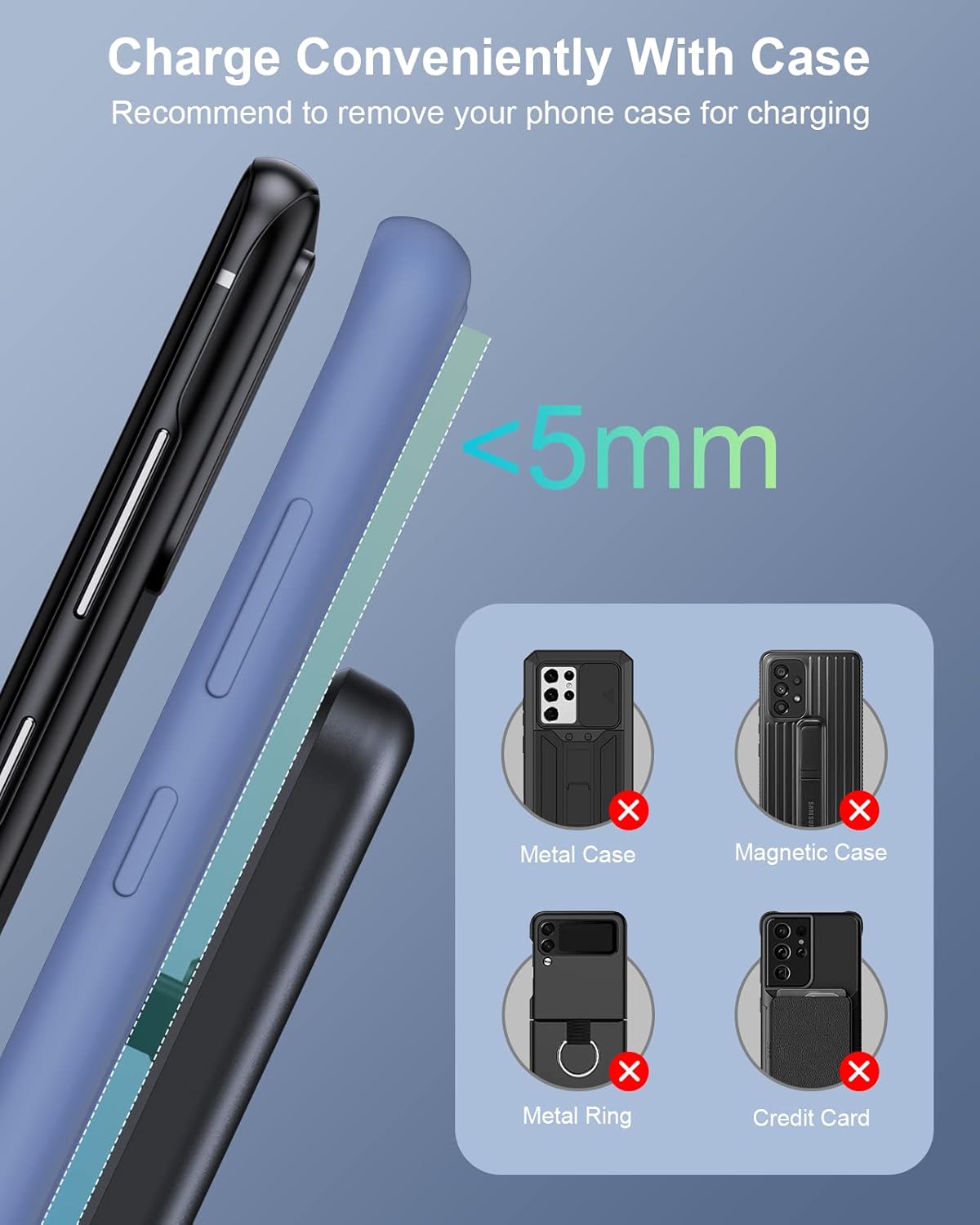 【High Quality Wireless Charging Station for Samsung】The ZUBARR wireless charger for samsung is designed with intelligent protection technology and reliable quality. Each Samsung Wireless charging station will be test stricitly. (🚫Note: the metal case, magnetic pad, credit card, grips & stands and case with a thickness greater than 0.2 in (5 mm) will interfere with charging. Please take off these cases when charging.)