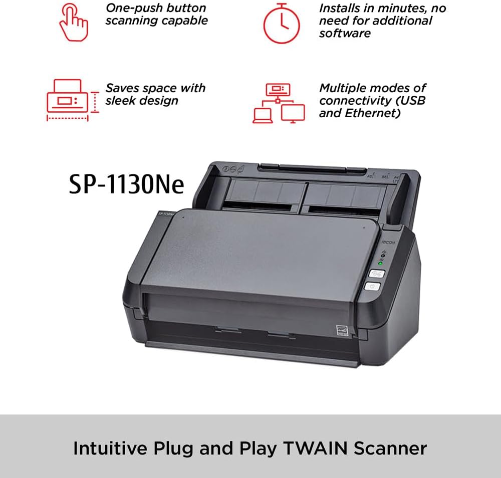 RICOH SP-1130Ne Easy-to-Use Color Duplex Document Scanner with Automatic Document Feeder (ADF) and Twain Driver