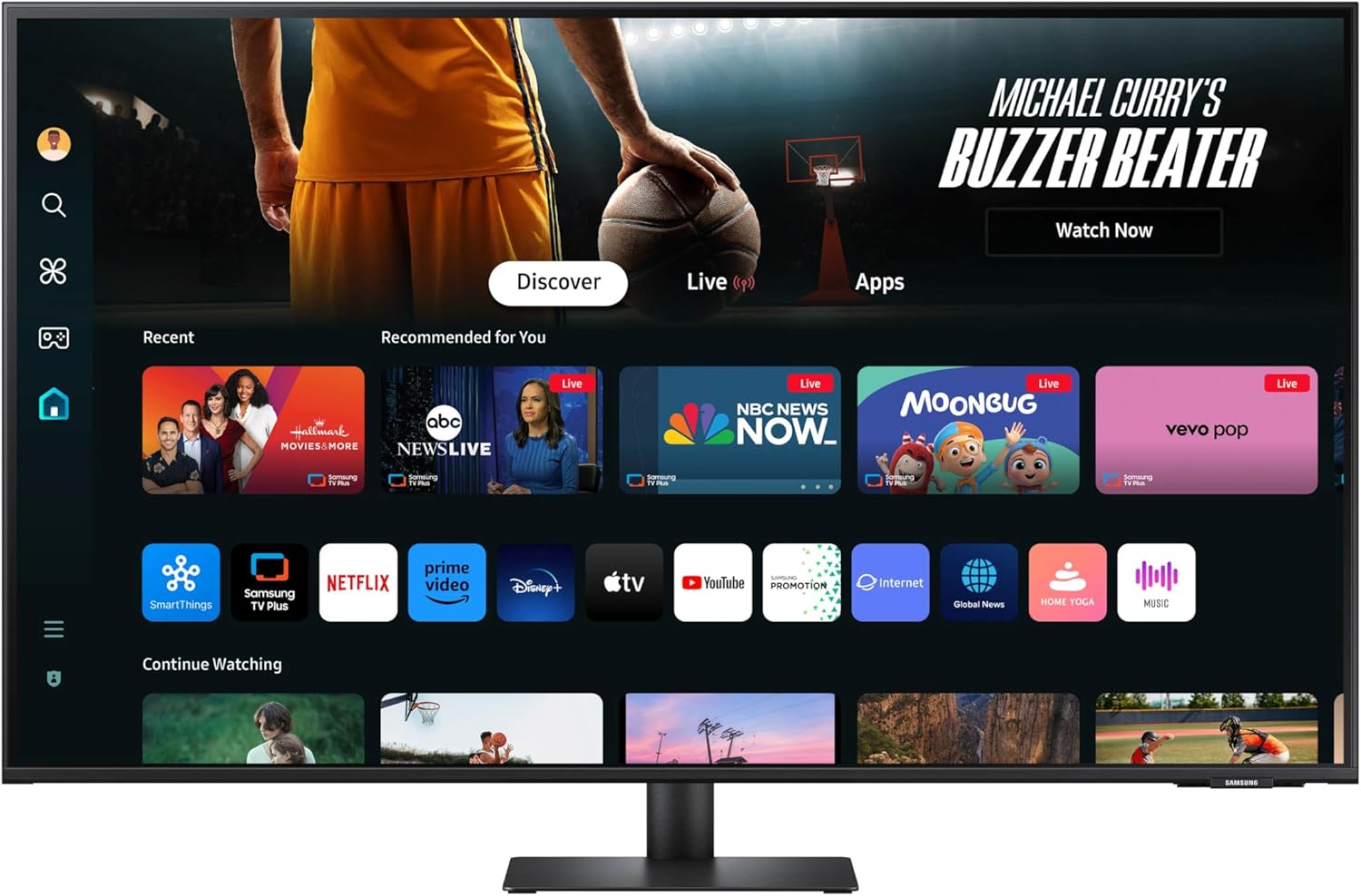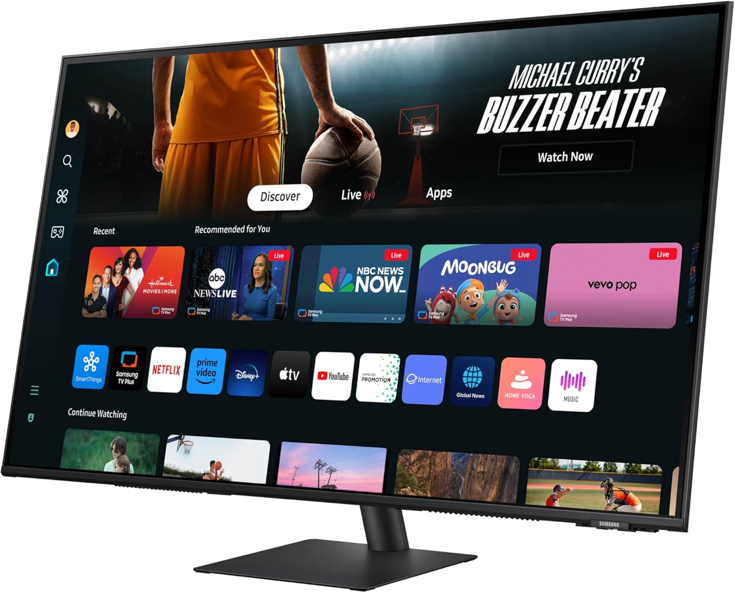 Samsung 43-Inch M7 (M70D) Series 4K UHD Smart Monitor, Speakers, HDR10, USB-C, Multiple Ports, Gaming Hub, SolarCell Remote, Vision Accessibility Tools, LS43DM702UNXGO, Black