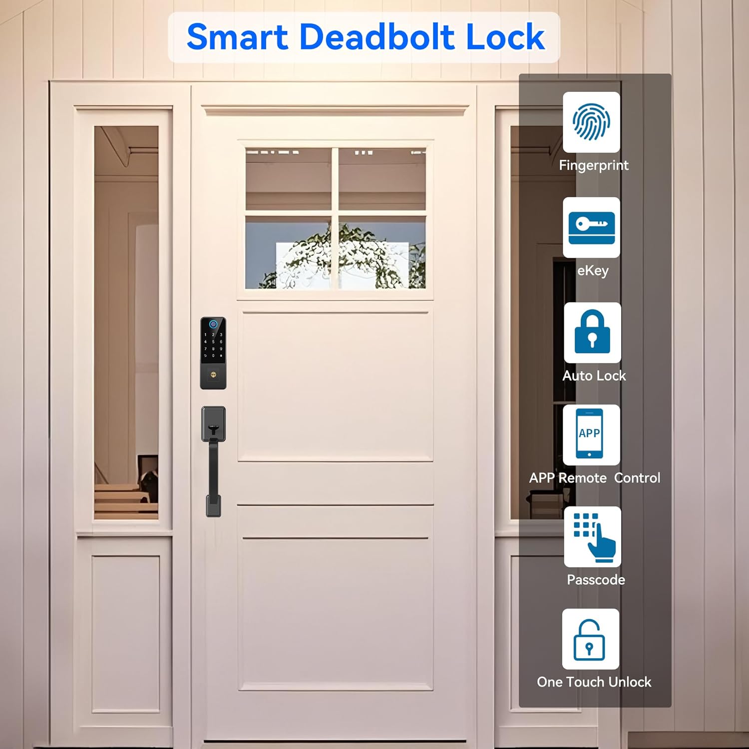 Smart Fingerprint Door Lock with Keypad – Keyless Entry Deadbolt for Front Door, Smart Door Locks for Front Door,App Control, Auto Lock,Easy Installation,Matte Black