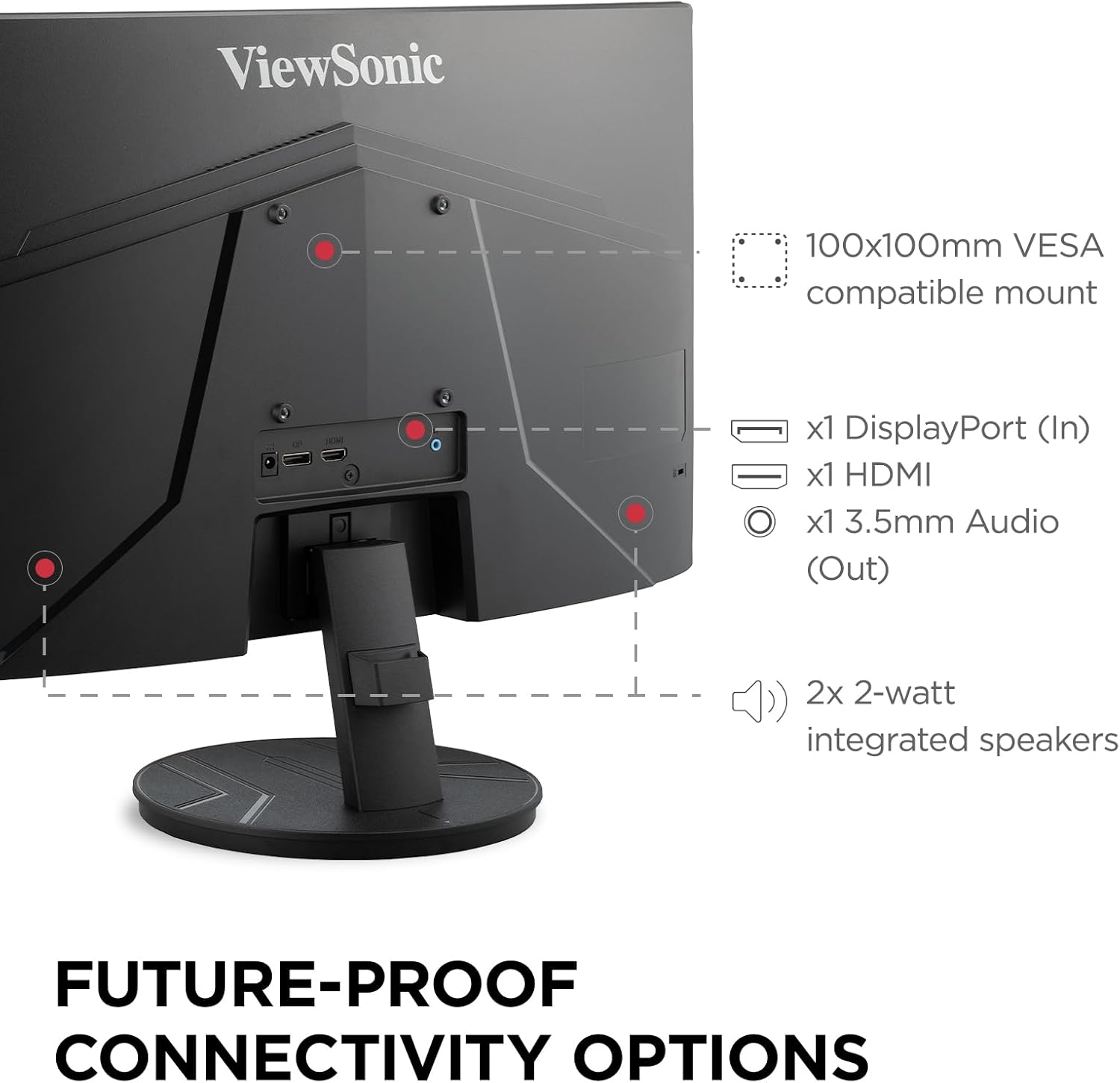 ViewSonic VA2416C 24 Inch Full HD 1080p Frameless Curved Monitor with Variable Refresh Rate, Eye Care, HDMI, and DisplayPort Inputs for Home and Office