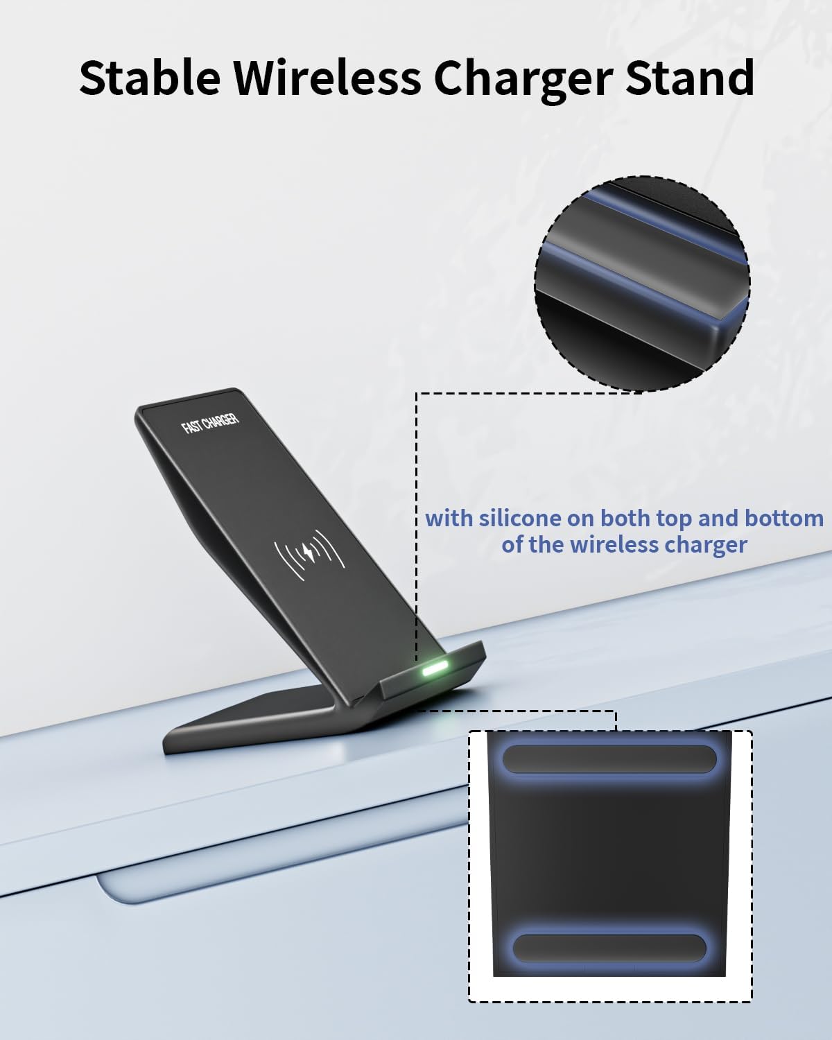 [Safe Protection and Stable Charging]Samsung Wireless charging stand features over-voltage protection, over-current protection, over-temperature protection and other detection functions. It prevents device overheating and battery damage, ensuring safe and reliable charging every time.As a practical wireless fast charger, its bottom anti-slip rubber strips keep the charger firmly fixed on the desk£¬this design also enhances the stability of this phone charger stand