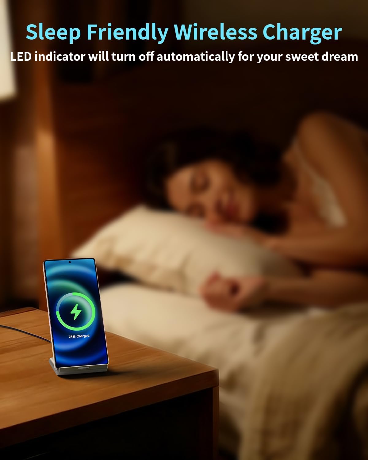 Wireless Charger Stand, 15W Fast Phone Wireless Charging Stand Station with 20W USB C Brick for Samsung W26/S25 Ultra/S24+/S23/S22+/S21, iPhone Air/17 Pro Max/16/15/14/13/12 with Sleep-Friendly Light