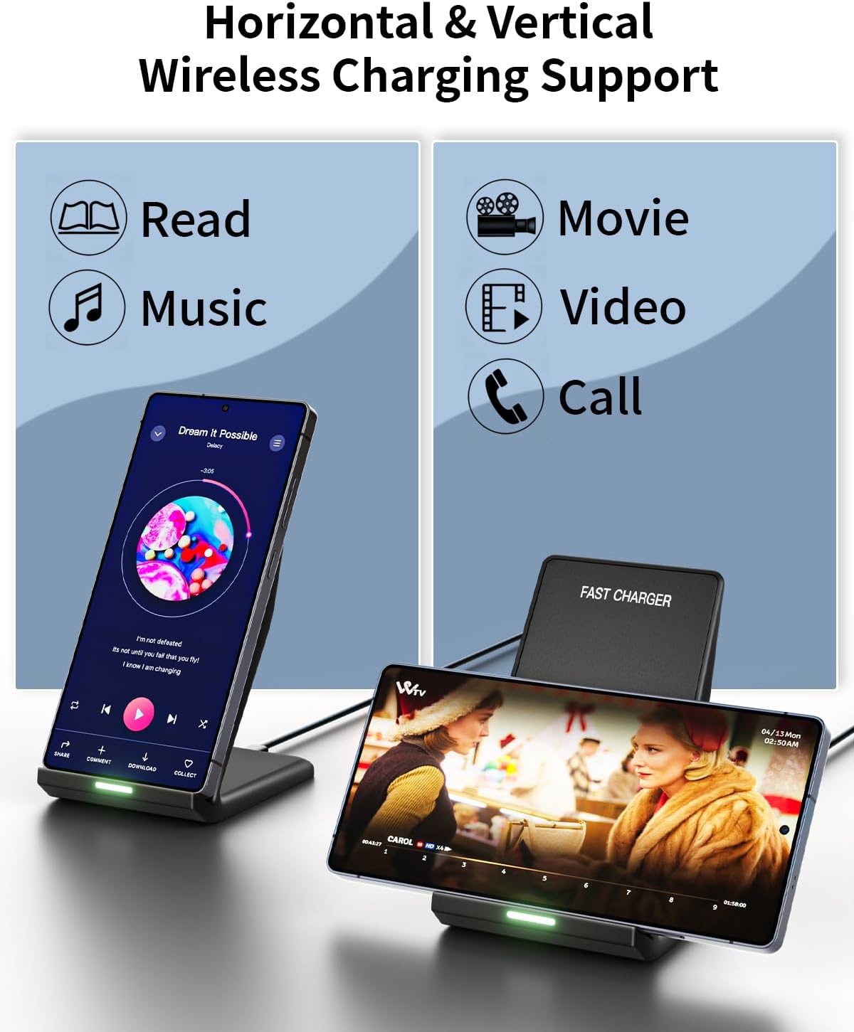the fast charging wireless stand can support horizontal and vertical position charging.