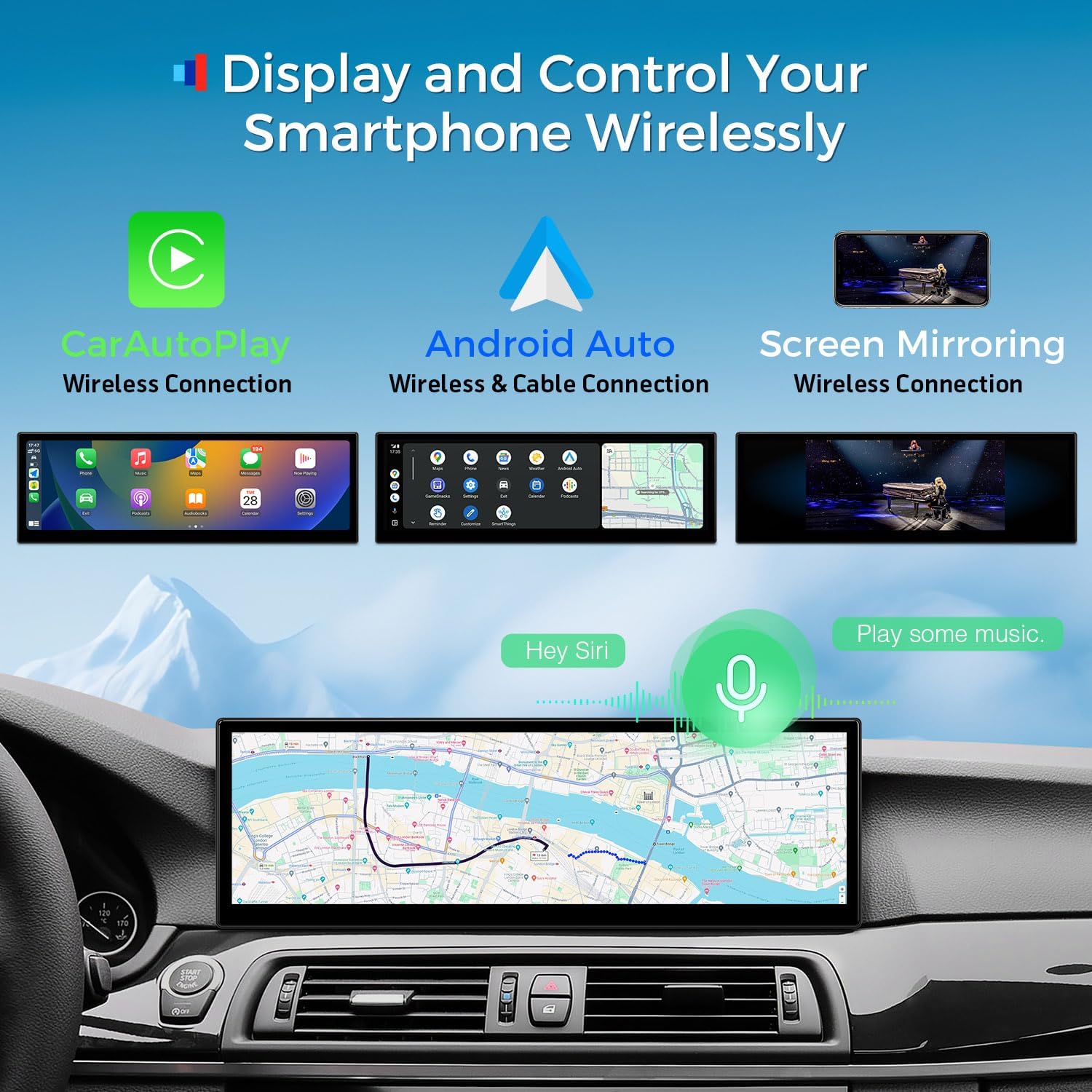 BUILT-IN WIRELESS CAR PLAY AND WIRELESS/WIRED ANDROID AUTO: Compatible with iPhone by Bluetooth wirelessly. You can also connect your Android phone by Bluetooth wirelessly or with a USB cable. It will bring you an incredibly intuitive way to access GPS, calls, music, Google Assistant, Siri from mobile phones while on the road for a truly connected experience.