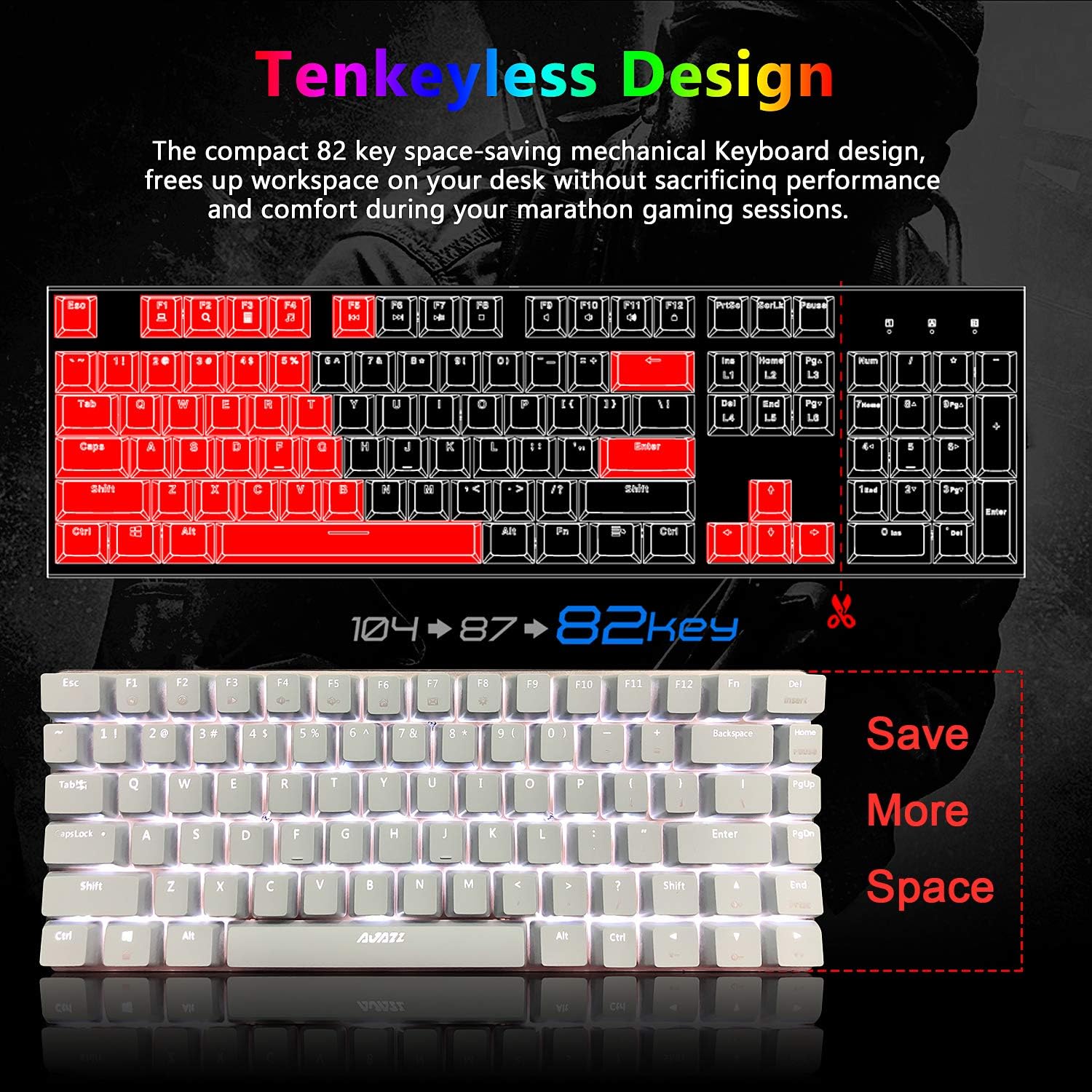 【82-key Compact Mechanical Keyboard】: This mini-mechanical keyboard features a very simplified design that reduces the size to 12.2 x 4.72 inches while preserving common buttons. Its compact size saves space. And the pluggable USB cable design, plug and play, also greatly increases its portability. This is a perfect mechanical keyboard for office or home use.